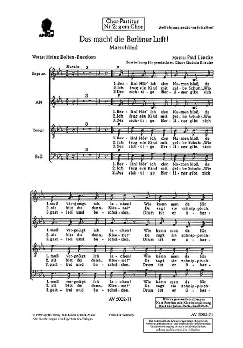 Read Online Berliner Luft: Marschlied "Berlin! Hör' ich den Namen bloß". Männerchor (TTBB) und Klavier. Partitur. PDF Library Genesis